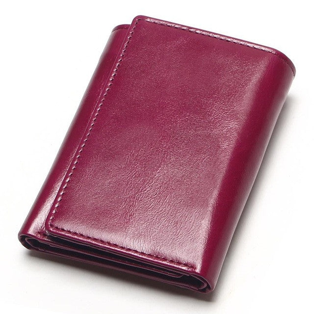 TAUREN Oil Wax Leather Wallet Female Wallets With Zipper Coin Bag Genuine Leather Women Wallets Small Short Purses For Female