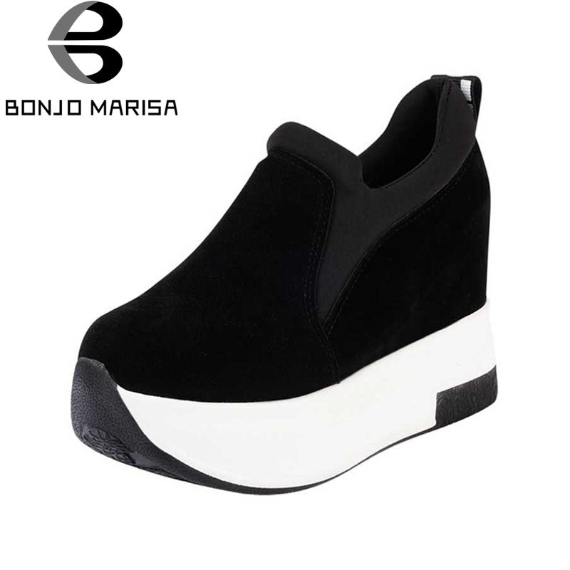 BONJOMARISA New Arrivals 2016 Solid Plain Round Toe Lace Up Sporting Thick Platform Pumps Women Fashion Cassual Shoes Women